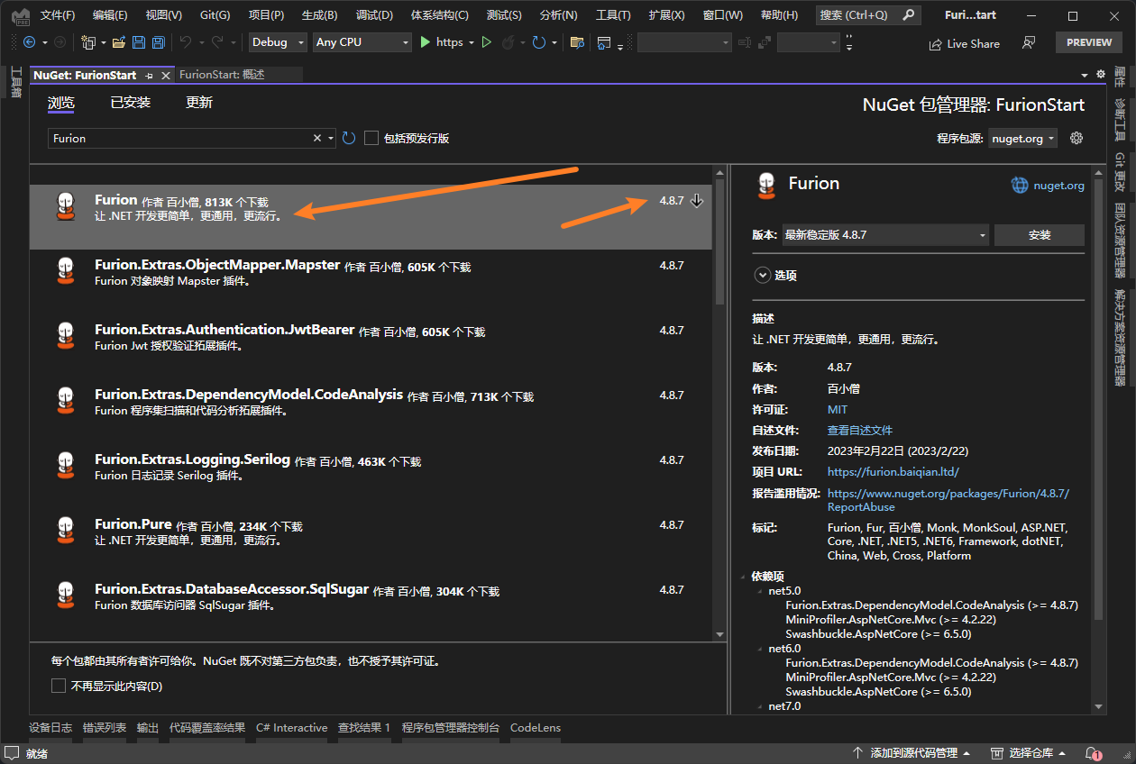 使用 Furion 之前先确保安装了最新的 .NET 8 SDK 并安装 Visual Studio 2022 Preview 最新版。