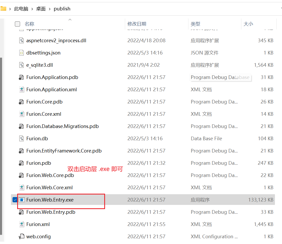 正常情况下,将应用程序发布成单文件后,需点击 XXXXX.exe 进行启动,这时候程序自动打开终端(控制台),之后根据提示在浏览器上打开对应的地址即可。